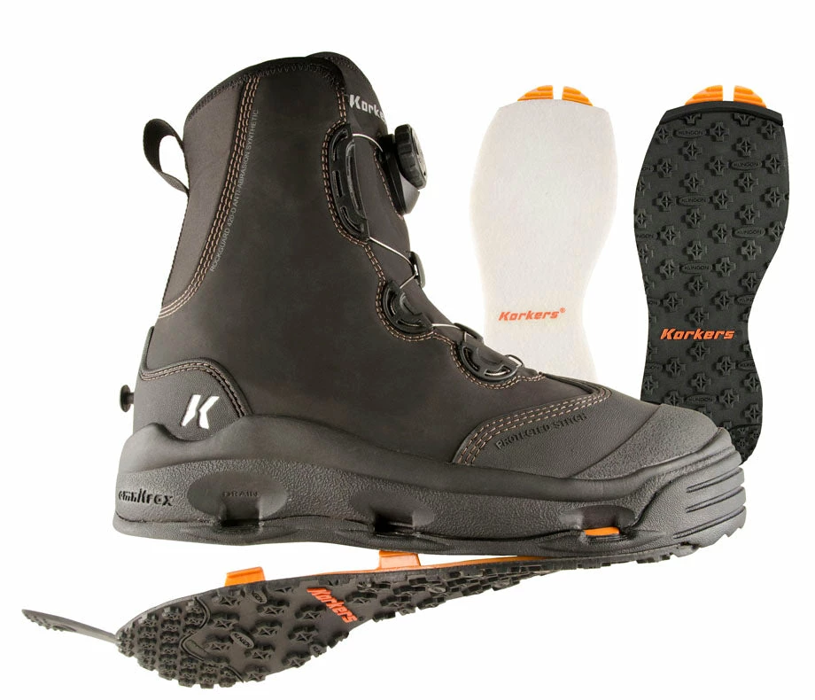 OmniTrax® Interchangeable Sole System adapts your traction to any fishing condition. Two outsoles included with every purchase.